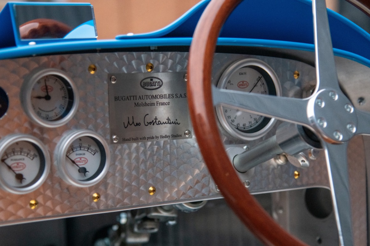 This handcrafted piece has a number of special features including an embroidered signature on the seat, and historic artwork painted in the footwells. Each detail has been carefully considered to pay tribute to Costantini’s legacy and Bugatti’s rich racing heritage.